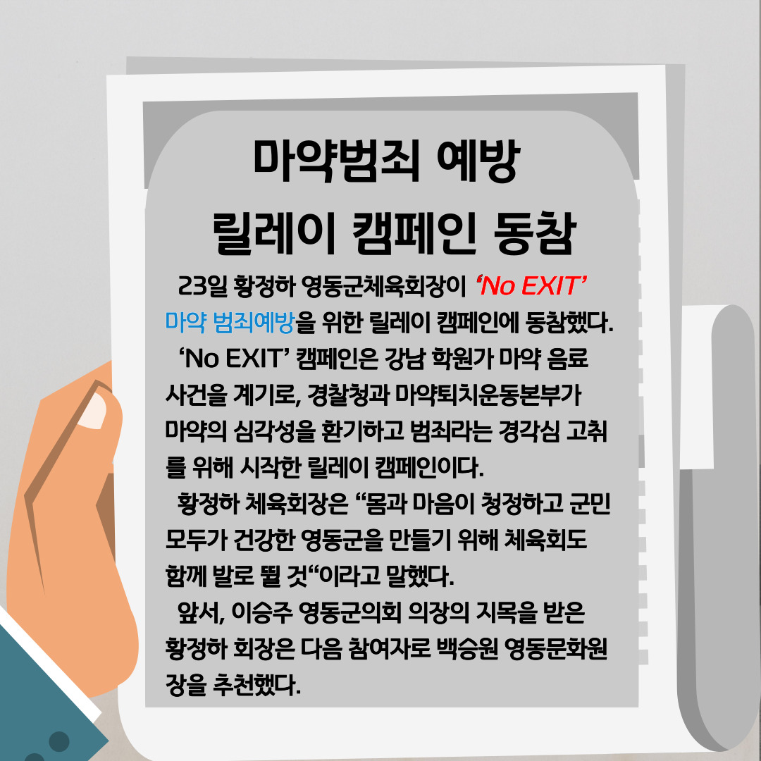 제목 'No EXIT' 마약범죄 예방 캠페인 동참