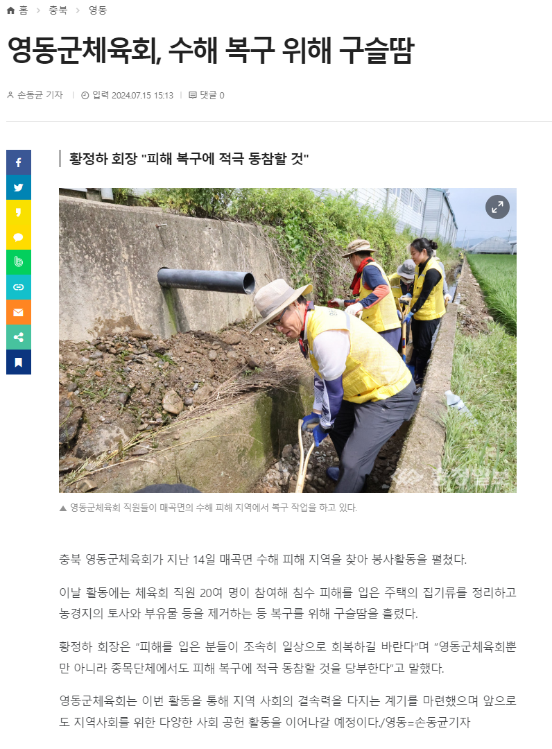 | 제목 | 영동군체육회, 수해 복구 위해 구슬땀(충청일보) | ||